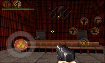 Les contrôles sont assez simples, car bien visibles à l'écran. Le joystick à gauche permet de se déplacer, tandis qu'un mouvement du doigt sur l'écran permet de pivoter pour viser dans une autre direction. 5 boutons sont disponibles à droite de l'écran, pour tirer, actionner des objets alentours, sauter, se baisser ou changer d'arme. Si cela ne vous convient pas, vous pouvez changer la position des boutons!